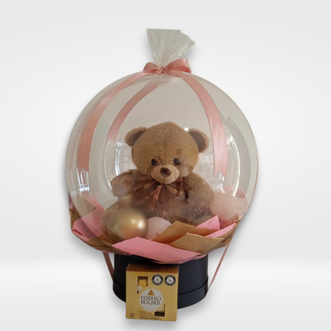 + Envio GratisBase de madera, globos con oso de peluche, chocolates Ferrero Rocher